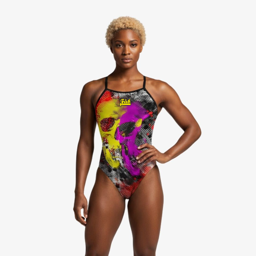 FAB swimsuits are made from a special blend of fabric. Double layered and double stitched with extreme resistance to chlorine, printed with long-lasting colors. Fully front and back lined with a very comfortable fit, locked with flat seams.