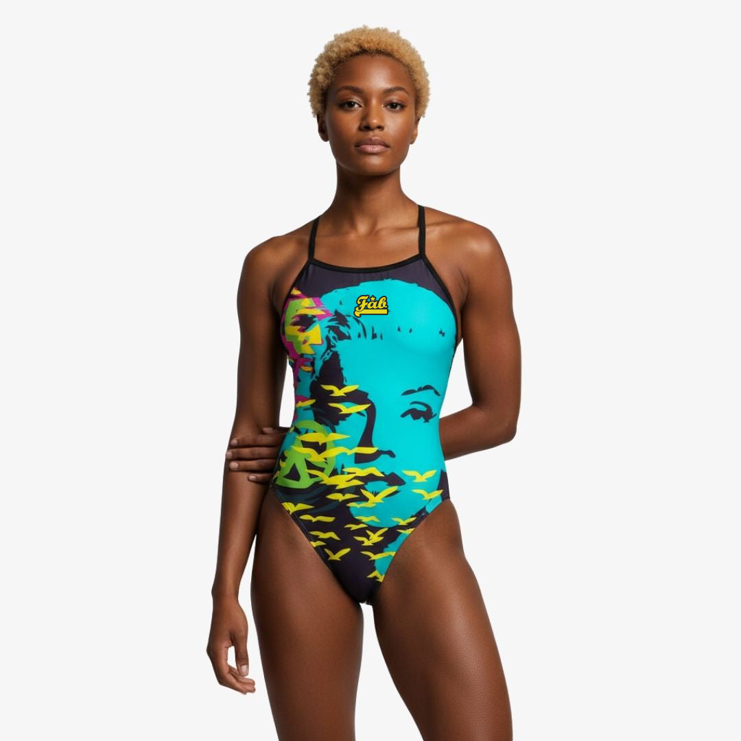 FAB swimsuits are made from a special blend of fabric. Double layered and double stitched with extreme resistance to chlorine, printed with long-lasting colors. Fully front and back lined with a very comfortable fit, locked with flat seams.