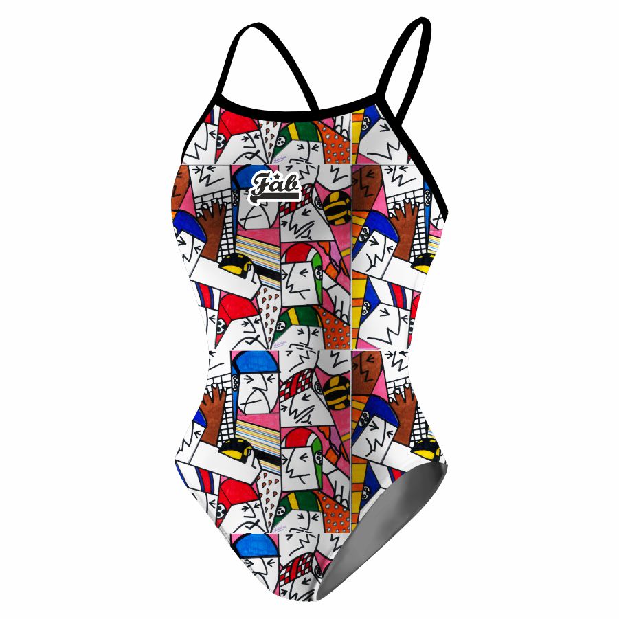FAB swimsuits are made from a special blend of fabric. Double layered and double stitched with extreme resistance to chlorine, printed with long-lasting colors. Fully front and back lined with a very comfortable fit, locked with flat seams.
